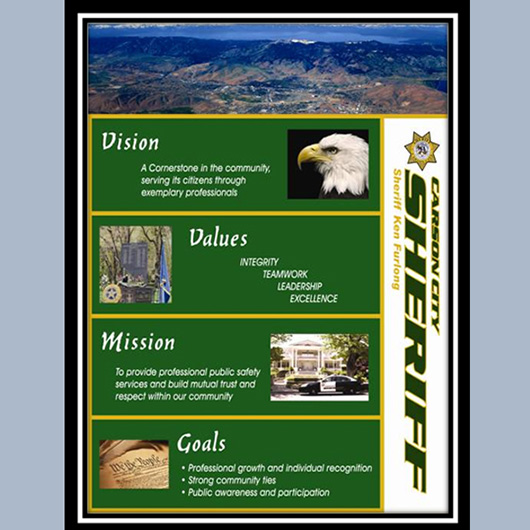 Sheriff Furlong’s Vision, core Values, identified Mission and public safety Goals provide the essential foundation of a law enforcement agency responsive to the community needs.